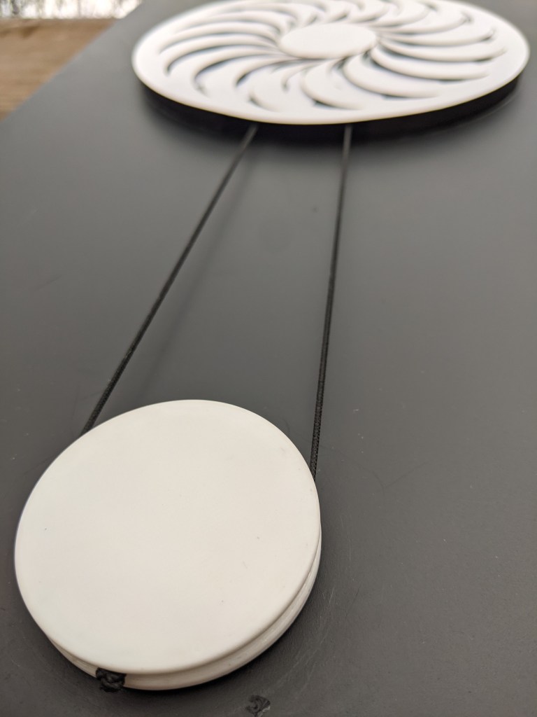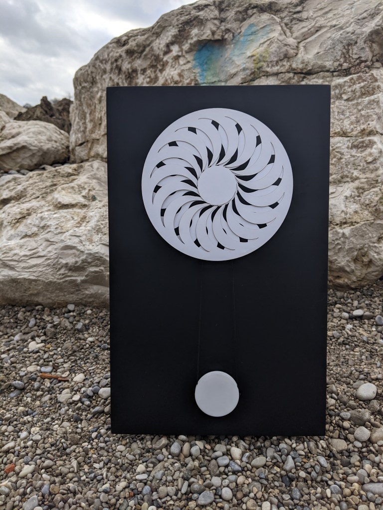 Durch ornamentale Überlappungen werden visuelle und akustische Elemente kombiniert, um eine Atmosphäre der Spannung oder Entspannung zu schaffen. Das Ziel des Projekts ist es, eine Umgebung zu schaffen, die die Betrachter:innen unterstützt ihre Wahrnehmung effektiver zu erleben und den Fokus auf die drehende Scheibe zu lenken.
